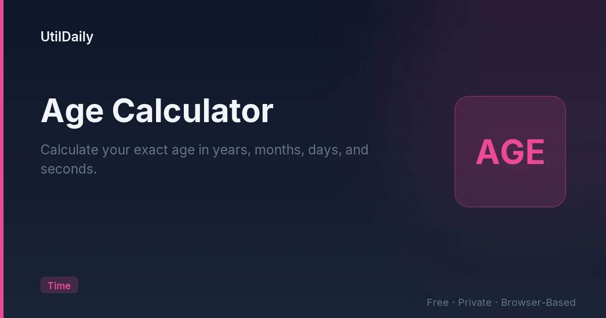 To calculate your age, enter your date of birth using the date picker or type it in YYYY-MM-DD format, then click Calculate. The tool computes your exact age in years, months, and days as of today — accounting for leap years and month-length variations so the calculation is always accurate to the day. Additional panels show your age in total months, total days, total hours, and total seconds since birth.