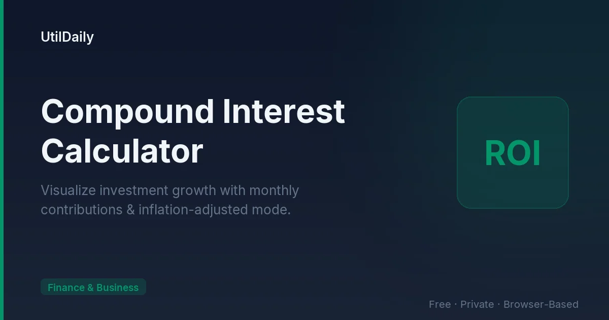 Hover over any bar in the chart to see a detailed tooltip for that year, including the exact balance, total principal contributed, and cumulative interest earned. The blue portion of each bar represents the total money you put in — your initial investment plus all monthly contributions to date. The green portion is pure compound interest: money your money made for you without any additional effort. As the years progress, watch the green portion grow exponentially relative to the blue — this visual is the single most powerful demonstration of why starting early is the most important variable in any long-term investment plan. Experiment with different contribution amounts or time horizons in this compound interest calculator to see how small changes in either variable produce dramatically different outcomes.