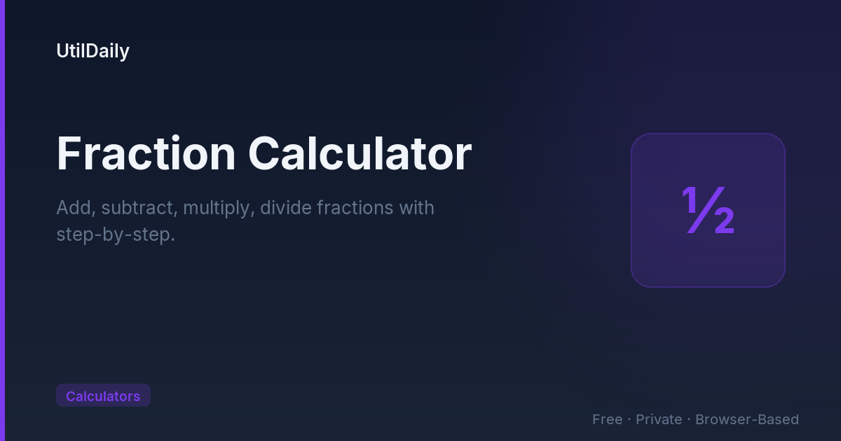 Use the history panel to review recent calculations and compare results. All calculations run entirely in your browser — no data is sent anywhere. The tool handles edge cases including negative fractions, division by zero detection, and improper fractions with denominators up to several thousand digits.